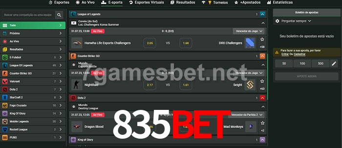O 835bet oferece uma grande seleção de opções de apostas em e-sports com probabilidades competitivas
